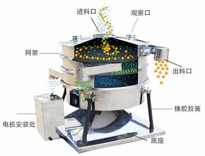 处理方法:先停机检查筛网,有堵塞就用软毛刷或橡胶球清理,要是物料粘性大,就用专用清洗剂,或者换成带防堵功能的筛网;再调整进料,让物料均匀、适量地铺在筛面中间;筛网松了就重新拉紧,破了就及时更换,确保拉紧度均匀;最后检查清网装置,更换磨损的弹跳球,保证其能正常活动。